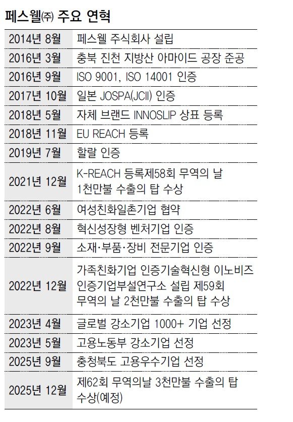 임직원 단체사진. 페스웰 제공아시아·태평양 지역의 제조업 성장과 친환경 소재 전환이 맞물리면서 고순도·고기능성 아마이드 수요는 더욱 가파른 상승 곡선을 그리는 중이다. 이런 가운데 수입 의존에서 벗어나 국산화에 성공하고 글로벌 시장 점유율을 확대해온 기업이 주목받고 있다.