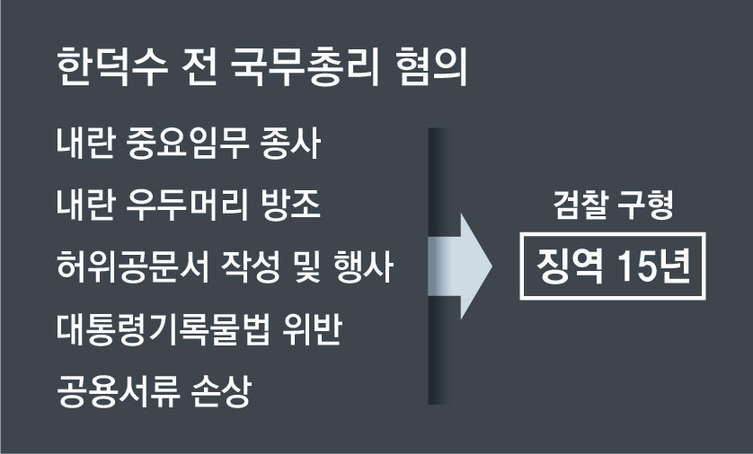 한 전 총리에 대한 특검의 구형은 내란 관련 혐의로 재판에 넘겨진 피고인 가운데 나온 첫 번째 구형이다. 선고 공판도 내년 1월 21일로 예정돼 내란 혐의 관련 피고인 중에선 가장 먼저 결과가 나올 가능성이 높다. 한 부장판사는 “내란은 조직적인 범죄”라며 “한 전 총리의 선고 형량에 따라 나머지 피고인들에 대한 선고 형량을 가늠할 수 있을 것”이라고 했다.
