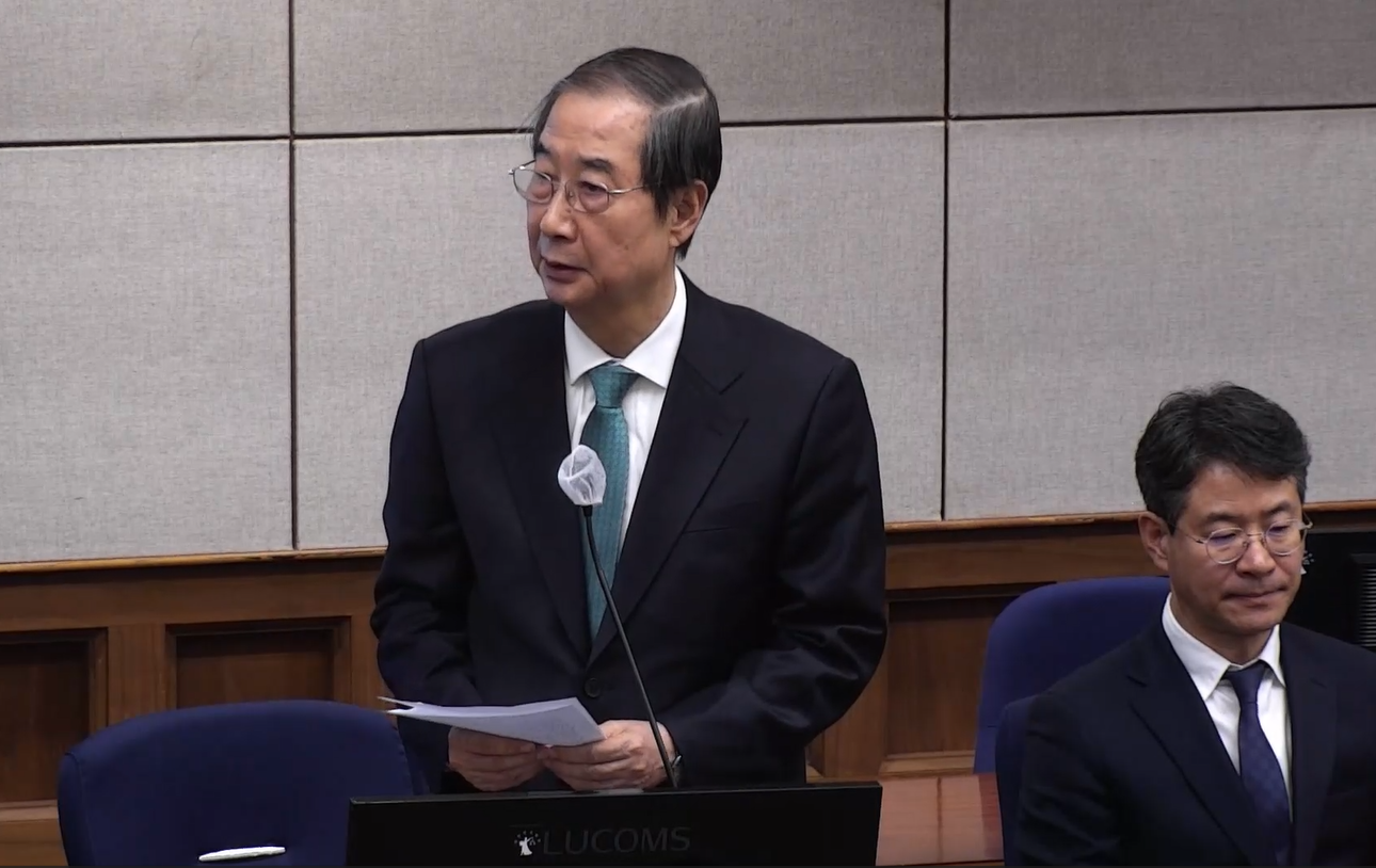 그는 “국무위원들과 다 함께 대통령의 결정을 돌리려 했으나 역부족이었다”며 “대한민국은 내게 많은 기회를 줬고 전력을 다하는 게 보답하는 길이라고 생각했는데, 그 길의 끝에 비상계엄 선포 사태를 만나리라고는 꿈에도 예상치 못했다”고 말했다. 이어 “비상계엄에 찬성하거나 도우려 한 일은 결코 없다”며 “이것이 오늘 역사적인 법정에서 내가 드릴 가장 정직한 말”이라고 했다. 한 전 총리 측은 “국무총리에게는 대통령의 계엄 선포를 막을 헌법과 법률상 의무가 없다”며 무죄를 주장했다.