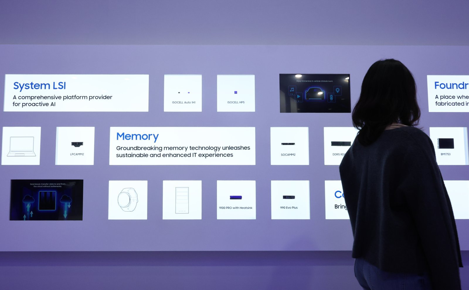 22일 서울 강남구 코엑스에서 개막한 제27회 반도체대전을 찾은 관람객이 삼성전자 부스를 둘러보고 있다. 2025.10.22. [서울=뉴시스]