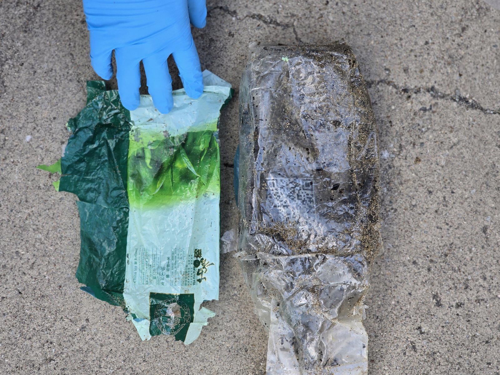 마약 의심 물체는 중국어가 쓰인 녹색 우롱차 포장 형태로, 포장지는 훼손이 심한 상태였다.