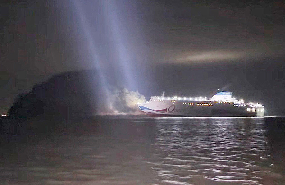 19일 오후 8시 17분쯤 전남 신안군 장산면 족도에 대형 여객선이 좌초돼 해경이 구조 작업을 벌이고 있다. (목포해경 제공. ) 2025.11.19/뉴스1
