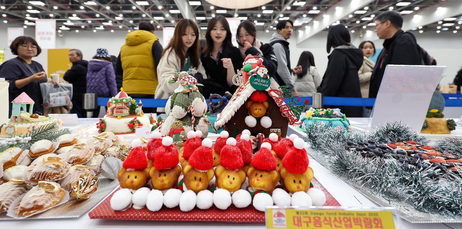 27일 대구 북구 엑스코에서 열린 제23회 대구 음식산업 박람회를 찾은 관람객들이 제과·제빵 공예 경연대회 출품작을 둘러보고 있다.