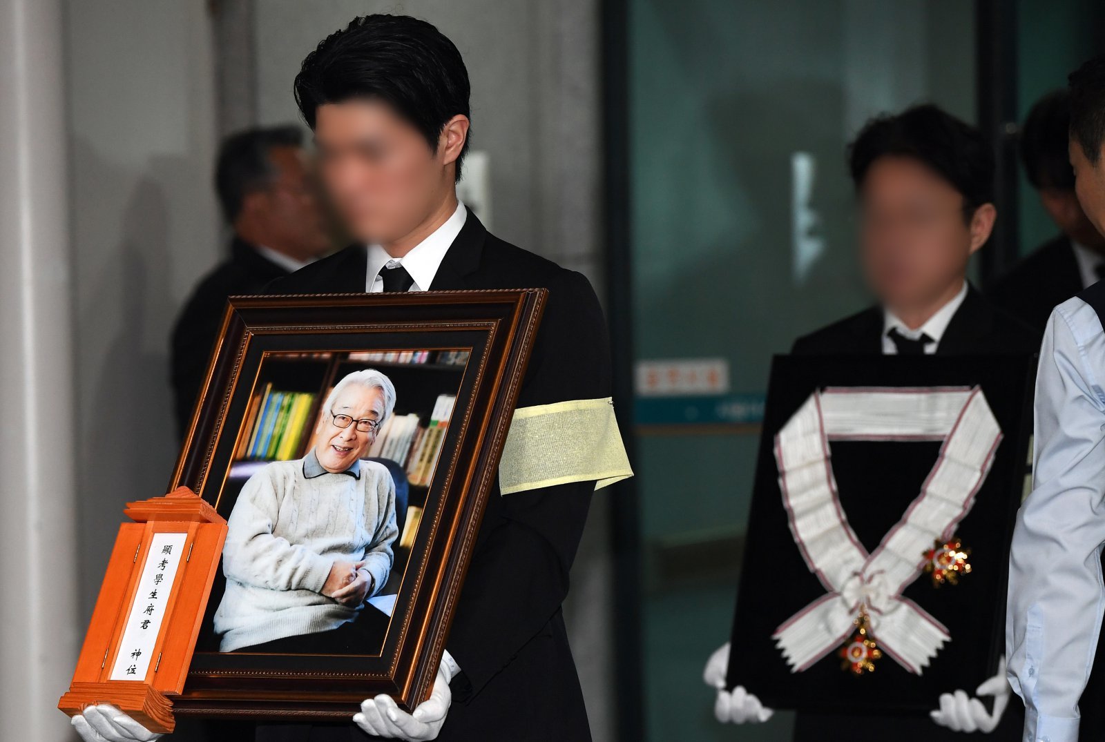 27일 오전 서울 송파구 서울아산병원 장례식장에서 고 이순재 배우의 영정사진과 25일 추서된 금관문화훈장이 운구 행렬 앞에서 옮겨지고 있다. 배우 최수종 정일우 등 많은 후배가 참석해 고인의 마지막 가는 길을 지켰다. 뉴스1“이게 드라마의 한 장면이면 얼마나 좋겠습니까. ‘오케이, 컷’ 소리에 툭툭 털고 일어나셔서 ‘다들 수고했다. 오늘 정말 좋았어’라고 해주실 것 같습니다.”