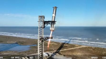 일론 머스크 테슬라 최고경영자가 소유한 미국 우주기업 스페이스X가 올해 1월 화성탐사선 ‘스타십’ 로켓의 1단 부스터를 회수하는 장면. 스페이스X