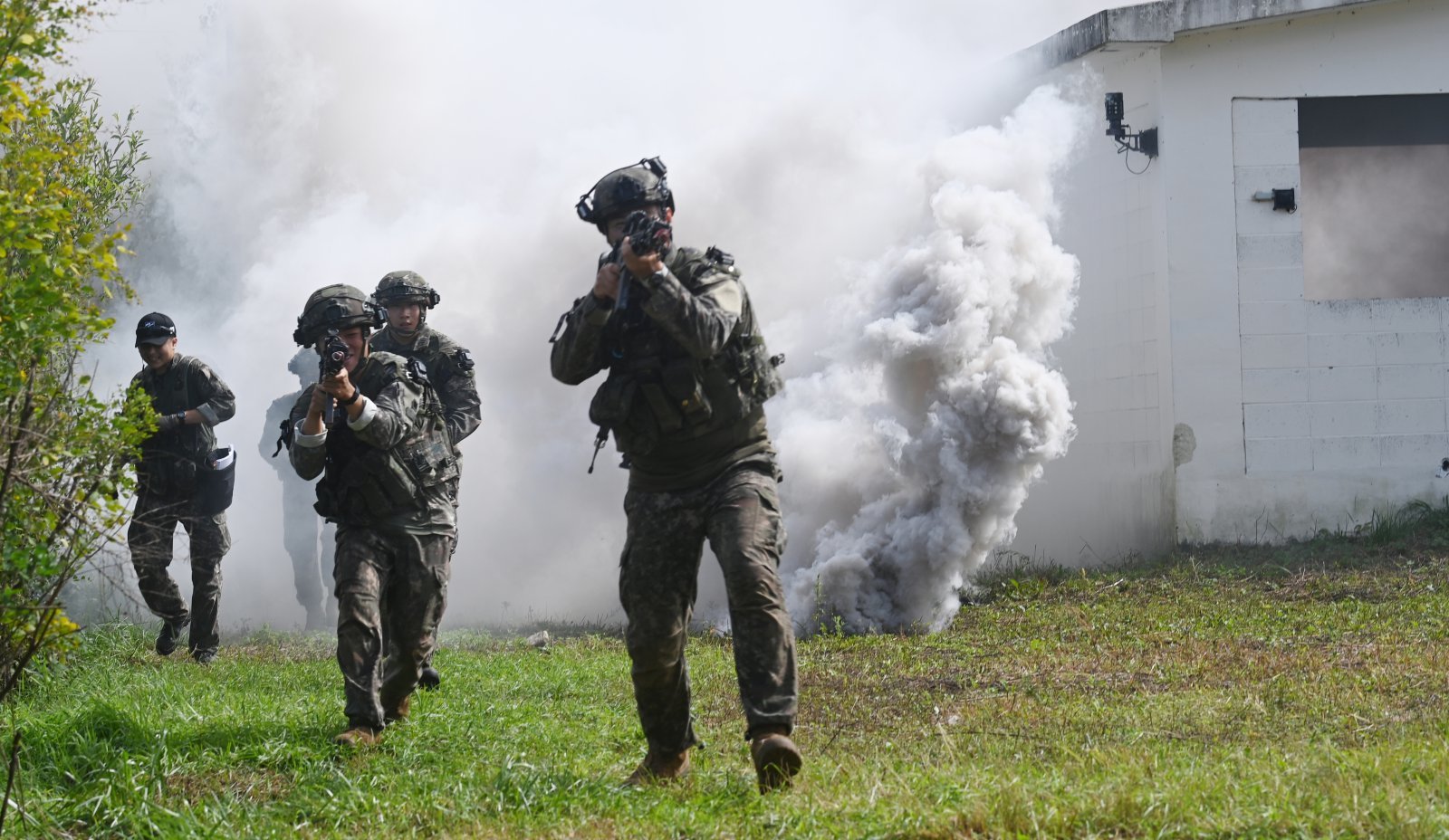 지난 9월 25일 강원도 인제군 육군 과학화훈련단(KCTC) 도시지역훈련장에서 열린 제3회 국제 과학화전투 경연대회(K-ICTC)에서 다국적 연합군 장병들이 건물 내부 대항군과 교전하고 있다. 2025.9.25. 사진공동취재단