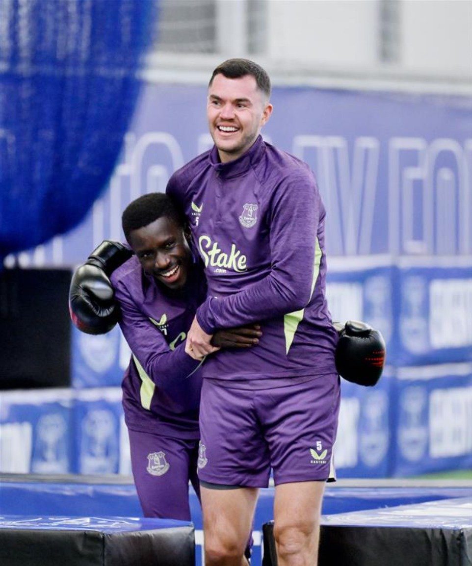 경기 도중 언쟁을 벌였던 게예와 킨(왼쪽부터)이 권투 글러브를 끼고 화해한 모습. 에버턴 SNS 캡처