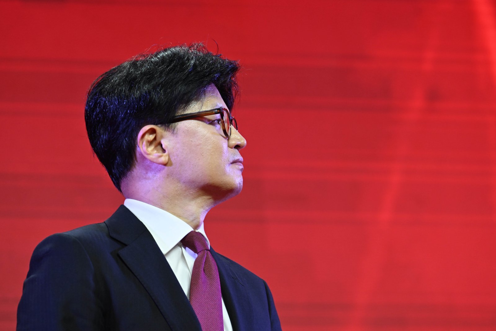2020년 5월 3일 당시 한동훈 국민의힘 대선 경선 후보가 경기 고양시 킨텍스에서 열린 제5차 전당대회에서 김문수 후보의 수락 연설을 바라보고 있다. (공동취재) 2025.5.3 뉴스1