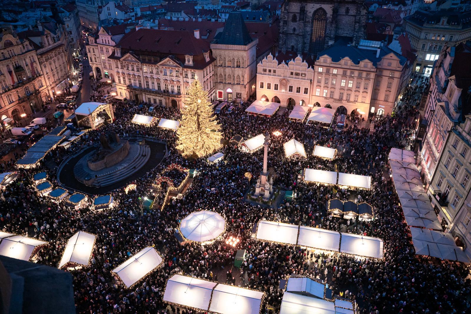 11월 29일(현지 시간) 체코 프라하 올드타운(구 시가지) 광장에서 공식 개장한 크리스마스 마켓에 많은 시민들과 관광객들이 몰려 있다. 프라하의 크리스마스 마켓은 내년 1월 6일까지 운영된다.