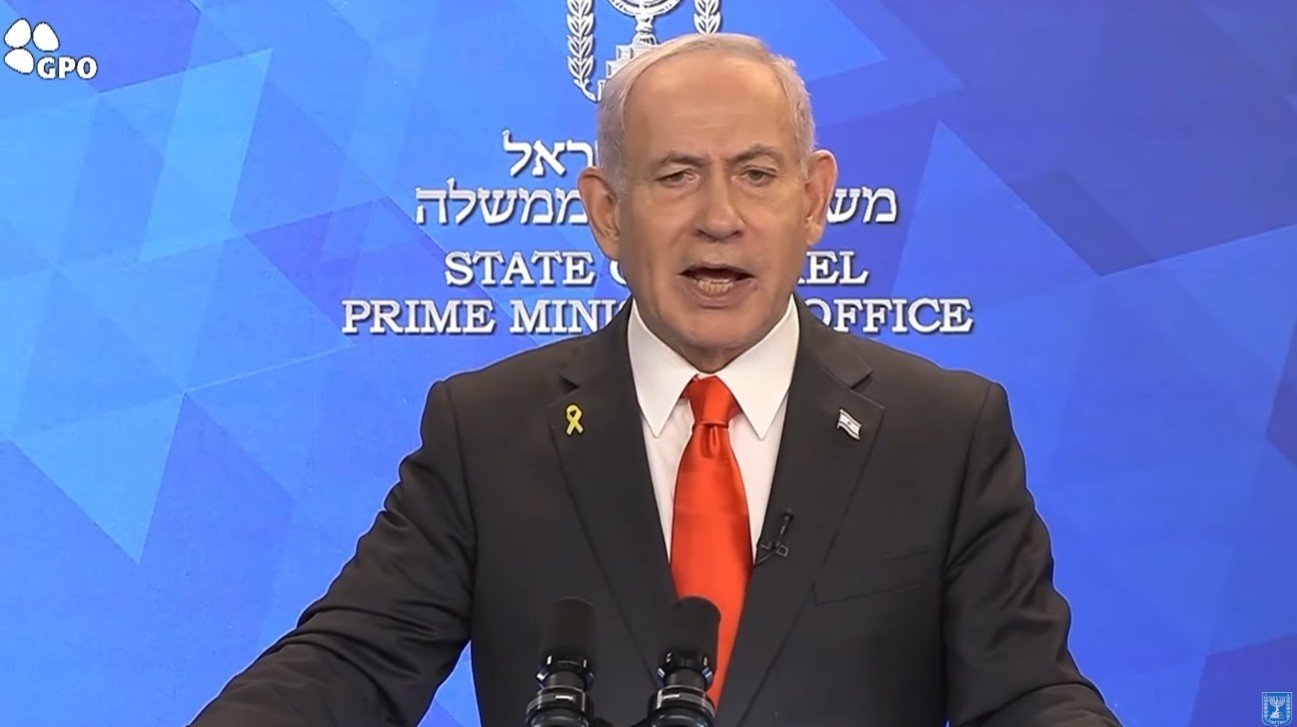 베냐민 네타냐후 이스라엘 총리가 4일(현지시간) 방송을 통해 가자지구 전쟁 종식을 위한 협상과 관련한 성명을 발표하고 있다.(이스라엘 정부보도실 유튜브 캡처) 2025.10.04.