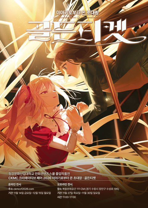 청강문화산업대학교(총장 최성신) 만화콘텐츠스쿨(원장 조장호)은 지난 달 28일부터 30일까지 사흘간 수원 복합문화공간 111CM에서 졸업전시회 ‘CKMC 크리에이티브페어 2026: 골든티켓展’을 성공적으로 마무리했다고 밝혔다.