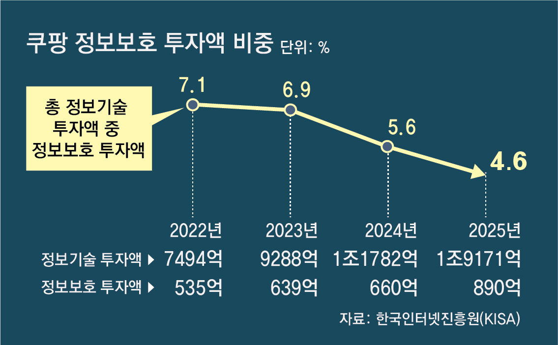 개인정보 유출 사고 60%가 내부 소행… 쿠팡, 4년간 정보보호 투자비율 줄여
