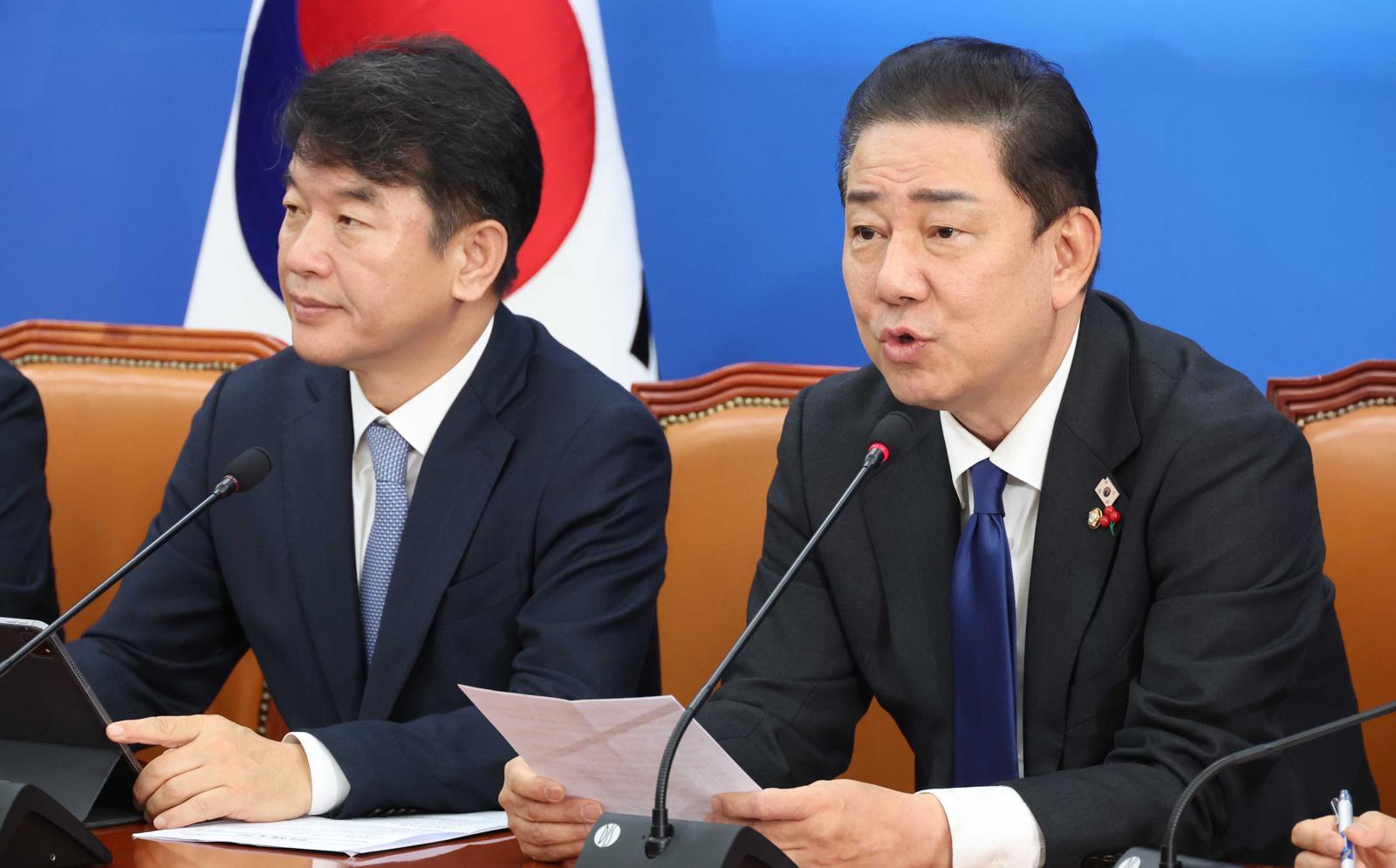 김병기 더불어민주당 원내대표가 2일 오전 서울 여의도 국회에서 열린 원내대책회의에서 발언을 하고 있다. 2025.12.02 서울=뉴시스