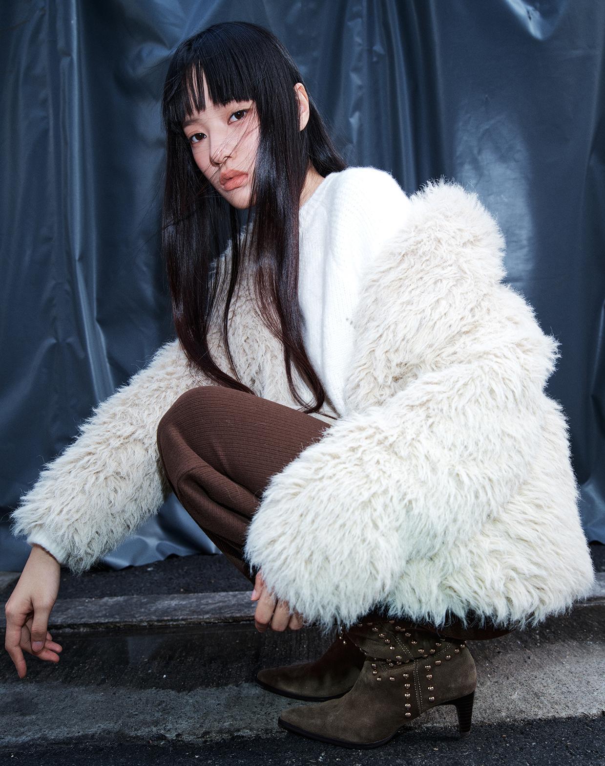 퍼 아우터에 대한 인식이 달라지면서 전반적인 스타일도 한층 다양해지고 있습니다. 질감은 정제된 단모뿐 아니라 야생적인 매력이 드러나는 거친 장모까지 폭이 넓어졌고요. 목을 감싸는 디자인이나 어깨선이 드러나지 않는 넉넉한 오버핏 디자인도 늘어나는 추세입니다. 색상 역시 브라운부터 아이보리, 라이트 그레이 등 밝은 톤으로 확장됐습니다. 이런 변화는 스타일링에서도 드러납니다. 과거처럼 퍼 재킷에 스커트나 구두를 매치하는 방식에서 벗어나 통이 넓은 청바지나 추리닝 바지를 더하는 조합이 MZ식 겨울 룩으로 자리 잡고 있습니다.