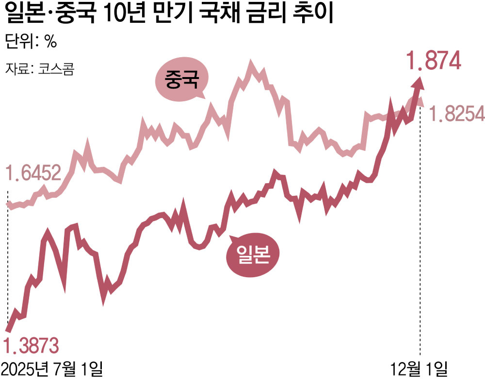 우에다 총재가 기준금리 인상까지 시사하자 1일 일본 10년 만기 국채 금리는 0.07%포인트 오른 1.87%로 2008년 이후 최고치가 됐다. 같은 날 중국의 10년 만기 국채 금리는 1.82%였다. 일본 채권의 매력도가 높아져 외국인 투자 자금이 일본으로 흐르면서 아시아 채권 시장이 재편될 수 있다. 이미 해외 투자자들의 일본 국채 보유액은 올해 2분기(4∼6월)에 2022년 이후 최고치를 찍었다. 미키 덴 SMBC 닛코 증권의 금리 전략가는 최근 블룸버그통신을 통해 “중국에서 일본으로 이동하는 자금이 증가할 것으로 예상한다”고 분석했다.