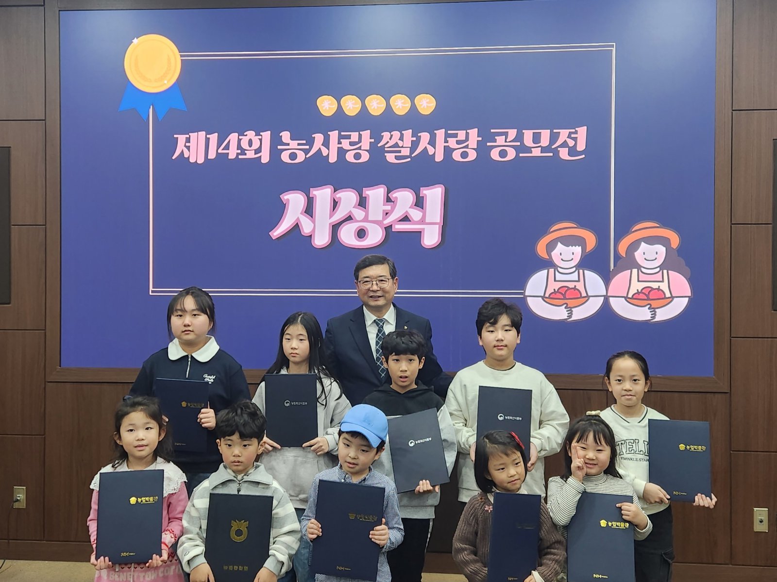 유치부 대상은 ‘알록달록 채소와 농부’를 그린 하승우 어린이가 선정됐고, 초등부 부문에서는 구윤호 학생의 ‘추수와 동시에 쌀포장까지 되는 새로운 농기계를 개발하고 싶어요’와 김지우 학생의 ‘지금 우리의 농가월령도!’가 공동 대상을 차지했다.