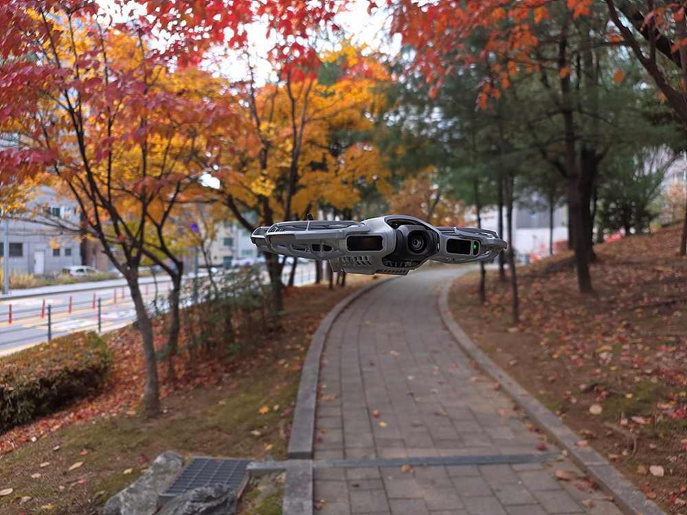 DJI 네오 2의 장애물 감지 기능은 전방 라이다(LiDAR, 레이저 시각화 거리 측정), 하방 적외선 감지 방식이다. 약 50cm~10m 이내 장애물을 실시간 감지한다. 비행 중 장애물을 만나면 잠시 멈추는 덕분에 충돌이나 추락 우려를 줄인다. 호버링(제자리 비행)과 위치 안정화 성능도 좋아져 실내에서의 비행도 손쉽다. 조종 신호가 끊기거나 배터리가 조금밖에 남지 않은 경우, 사용자나 조종기의 위치로 드론이 자동 복귀하는 RTH(Return To Home) 중에도 장애물 감지가 동작해 더욱 편리하다.