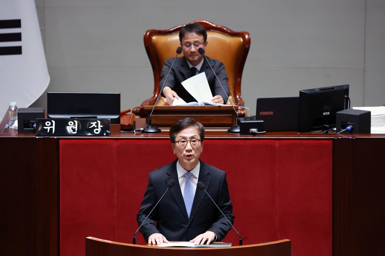김인회 감사원장 직무대행이 27일 서울 여의도 국회에서 열린 예산결산특별위원회 전체회의에서 2024년 회계연도 결산 의결 후 감사 인사를 하고 있다. 2025.11.27. 뉴시스