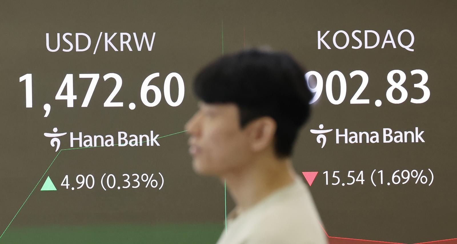 14일 오전 서울 중구 하나은행 딜링룸 전광판에 코스닥과 원달러 환율 시황이 표시되고 있다. 2025.11.14 뉴스1