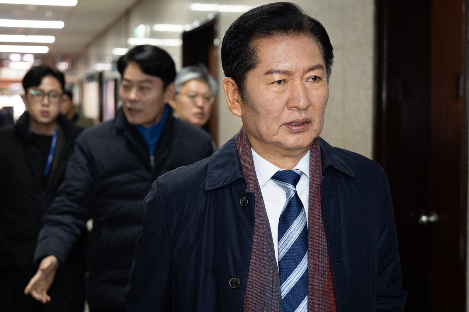 정청래 더불어민주당 대표가 4일 서울 여의도 국회에서 열린 비공개 당무위원회 참석을 위해 당대표실로 들어서고 있다. 뉴스1