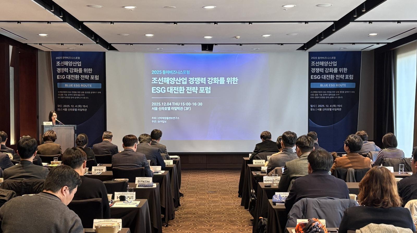 ‘조선해양산업 경쟁력 강화를 위한 ESG 대전환 전략 포럼’이 서울 중구 신라호텔 라일락관에서 4일 열렸다. 이번 포럼은 조선해양산업의 산·학·연·관 협력 거버넌스를 공유하고, ESG(환경·사회·지배구조) 전환 항로의 공동 설계 방향을 논의하기 위해 마련됐다. 선박해양플랜트연구소가 주최하고 동아일보가 주관했다.