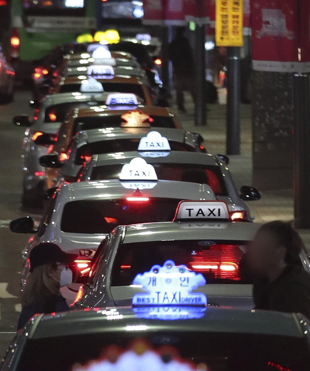 신종 코로나바이러스 감염증(우한 폐렴) 여파로 외국인 관광객이 줄어든 10일 저녁 서울 중구 명동 도로에 택시가 줄지어 승객을 기다리고 있다. 2020.02.10. [서울=뉴시스]