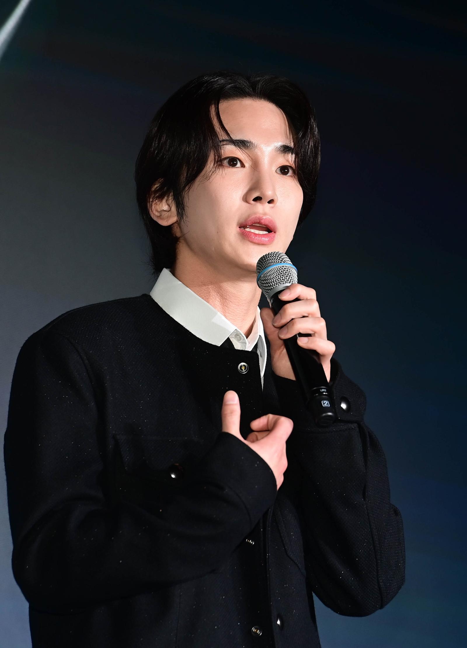 샤이니 키가 서울 영등포구 여의도동 페어몬트 앰배서더 서울에서 열린 세 번째 미니앨범 ‘Pleasure Shop‘ 발매 기념 기자간담회에서 MC의 질문에 답하고 있다.