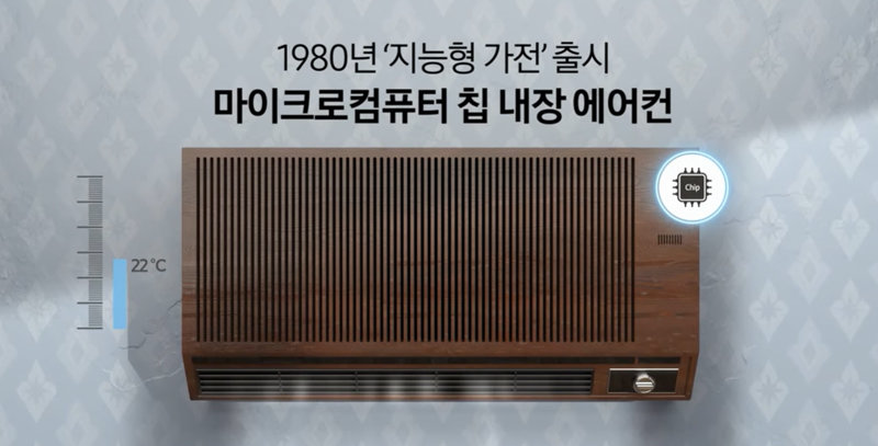영상에는 1980년 마이크로컴퓨터 칩을 탑재한 에어컨, 1982년 화면이 장착된 다목적 전자레인지, 1985년 음성 안내 기능을 적용한 냉장고 등 과거의 혁신 가전 제품들이 등장한다. 2018년 음성비서 ‘빅스비’를 적용한 가전과 최근의 인공지능(AI) 기반 가전 기능도 함께 소개됐다.