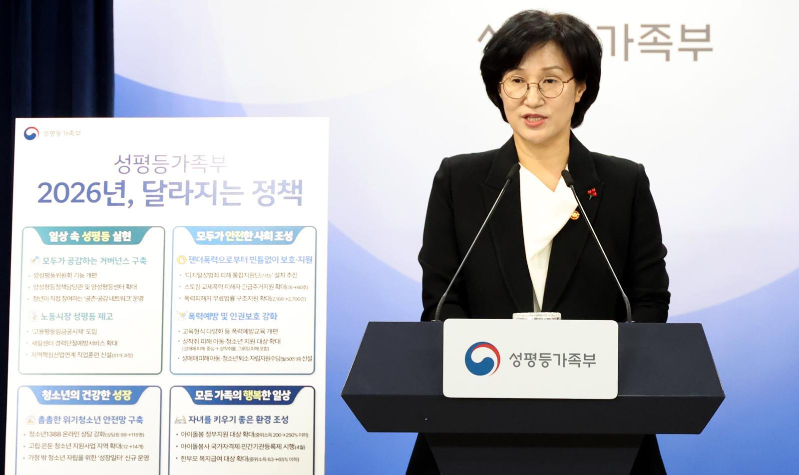 원민경 성평등가족부 장관이 19일 오후 서울 종로구 정부서울청사에서 업무보고 사후 브리핑을 하고 있다. 2025.12.19 뉴시스