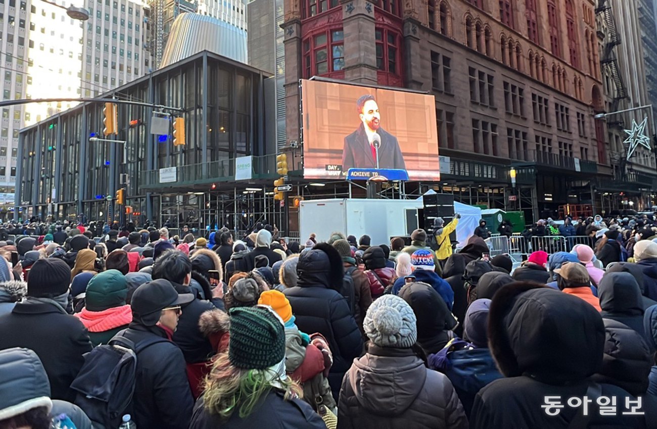 맘다니 시장의 연설은 1시간 이상 진행된 취임식의 맨 마지막 순서였는데, 이때쯤에야 드디어 단체관람 거리에 시민들이 가득 채워졌다.