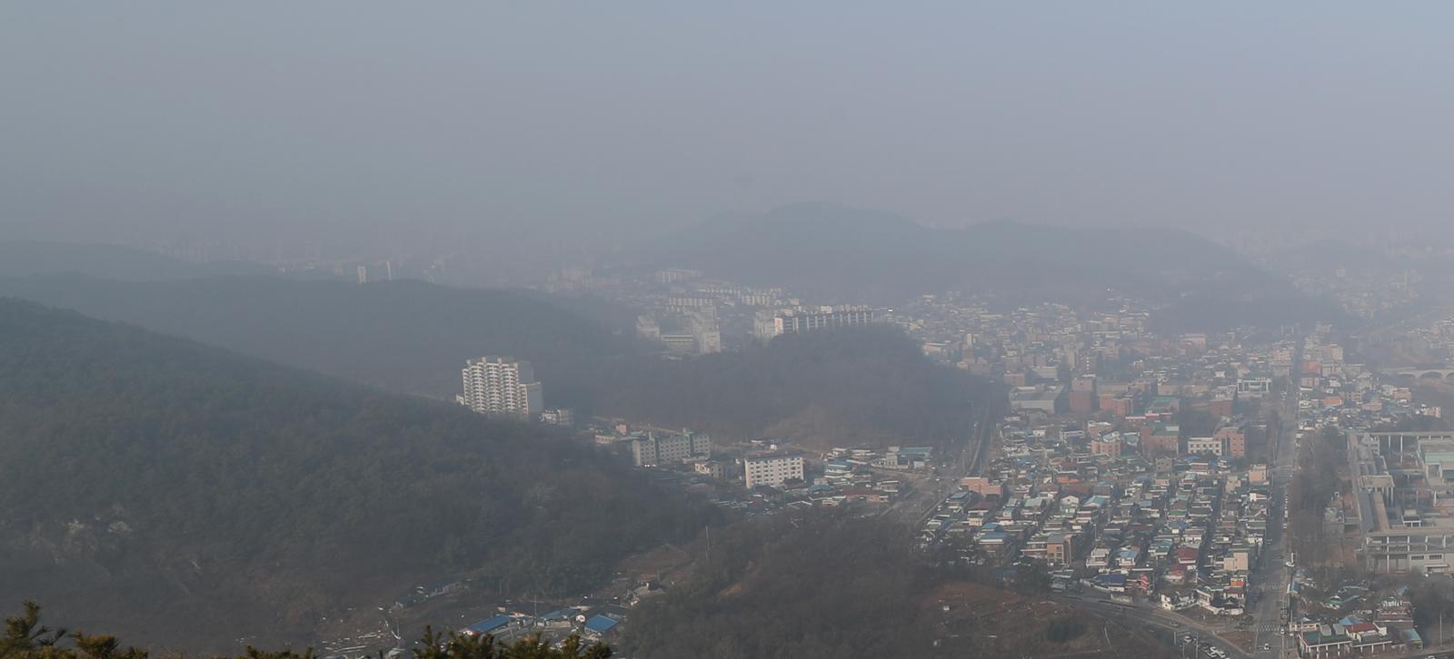 전북특별자치도 전역에 미세먼지 주의보가 발령된 25일 전북자치도 전주시 치명자산에서 바라본 도심이 미세먼지로 뒤덮여 있다. 2025.3.25/뉴스1