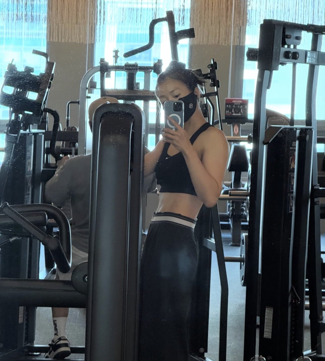 사진 속 이시영은 헬스장에서 거울 셀카를 찍었다.