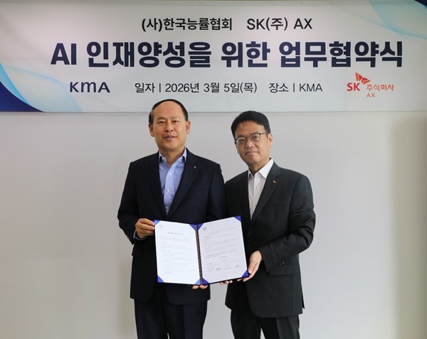 KMA 한국능률협회(상근부회장 최권석, 이하 KMA)와 SK AX(사장 김완종)가 국내 기업의 AI 역량 강화를 위해 손을 맞잡았다.