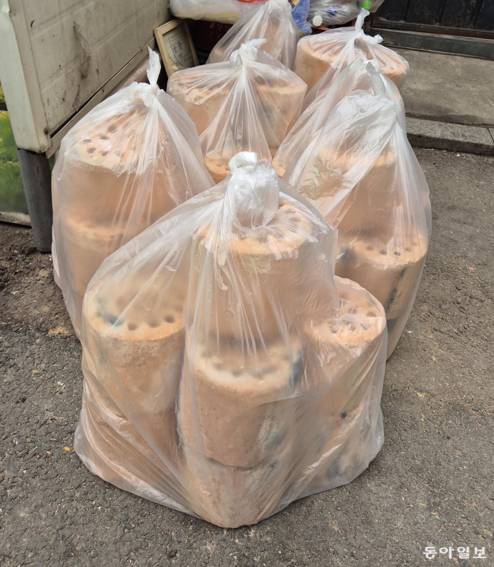 다 타고 난 연탄을 선물 포장하듯 가지런히 봉투에 담았습니다. 겨우내 방안의 온기를 전한 연탄에 대한 고마움이 묻어나는 듯합니다.