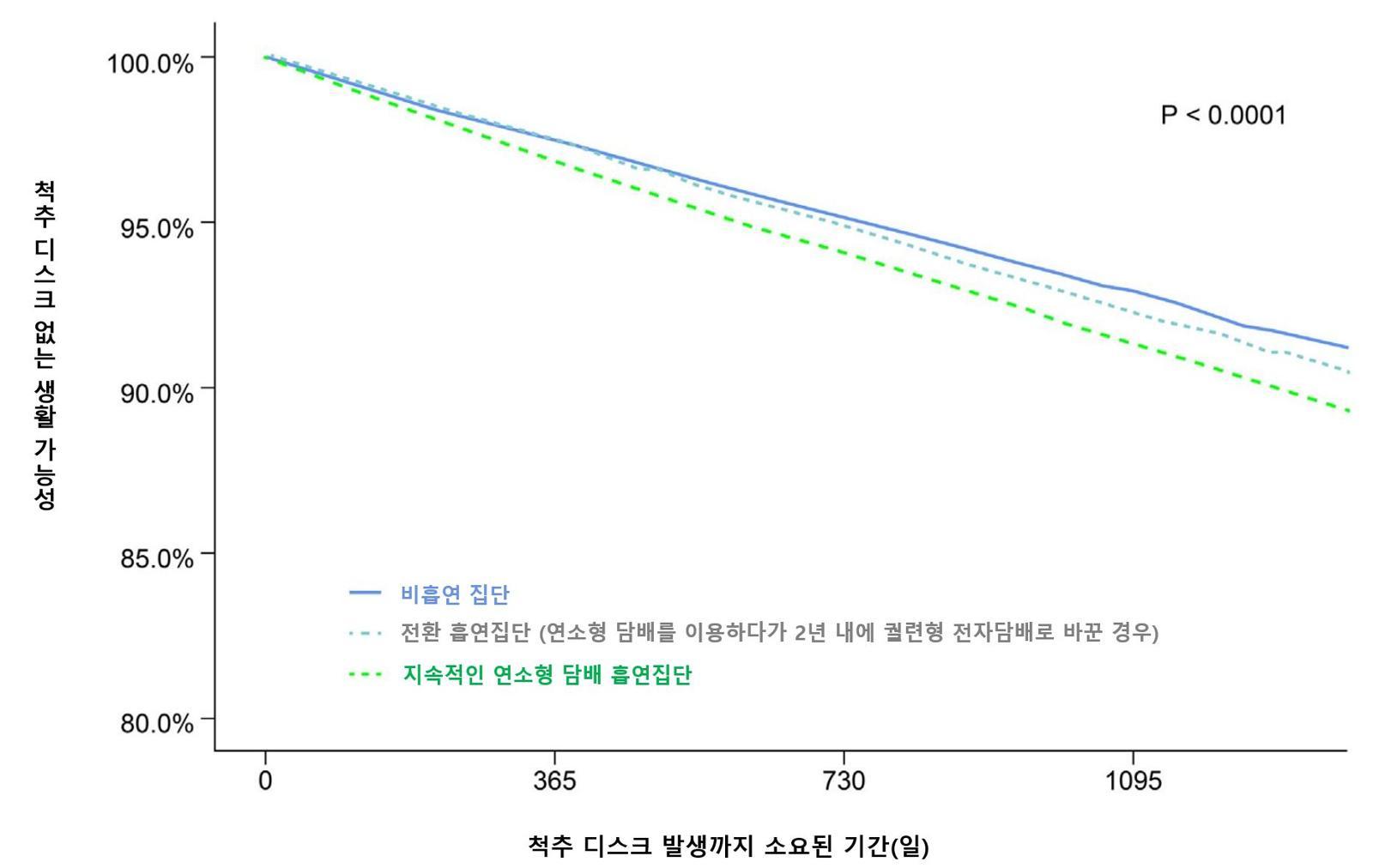 연소형 담배를 계속 피운 집단과 비교하면, 궐련형 전자담배로 전환한 집단의 디스크 질환 위험은 약 11% 낮았지만, 비흡연자와 비교하면 여전히 높은 위험(1.092배)을 유지했다.