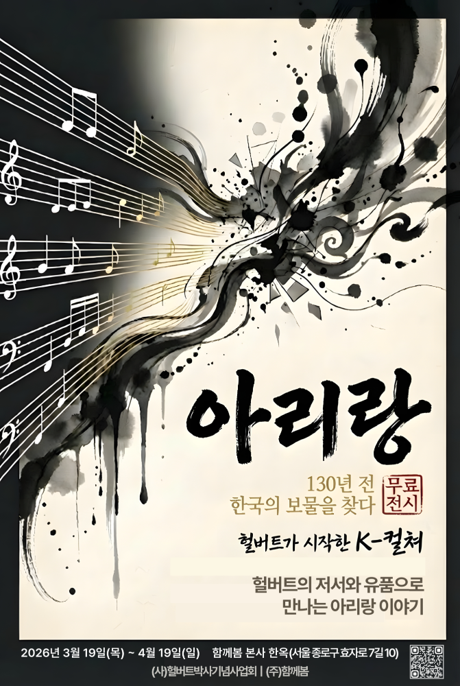 김동진 회장은 “21일 예정된 BTS의 아리랑 테마 공연과 함께 K-컬처의 세계적 확산이 주목받고 있다”며 “그 출발점 중 하나가 헐버트가 기록한 아리랑이라는 사실을 널리 알리고 싶다”고 밝혔다. 이어 “이번 전시가 한국 문화를 세계에 소개한 선구자였던 헐버트 박사를 다시 조명하는 계기가 되길 기대한다”고 덧붙였다. 전시는 무료.