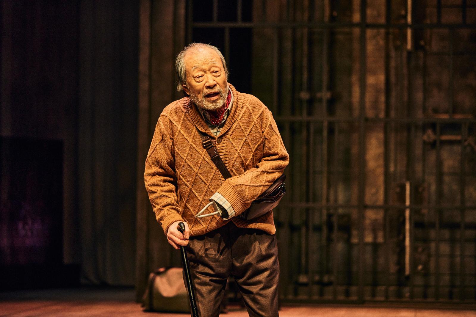 연극 ‘불란서 금고’에서 맹인 역을 맡은 신구. 비상한 청력을 활용해 금고를 여는 과정을 예술로 여긴다. 장차·파크컴퍼니 제공