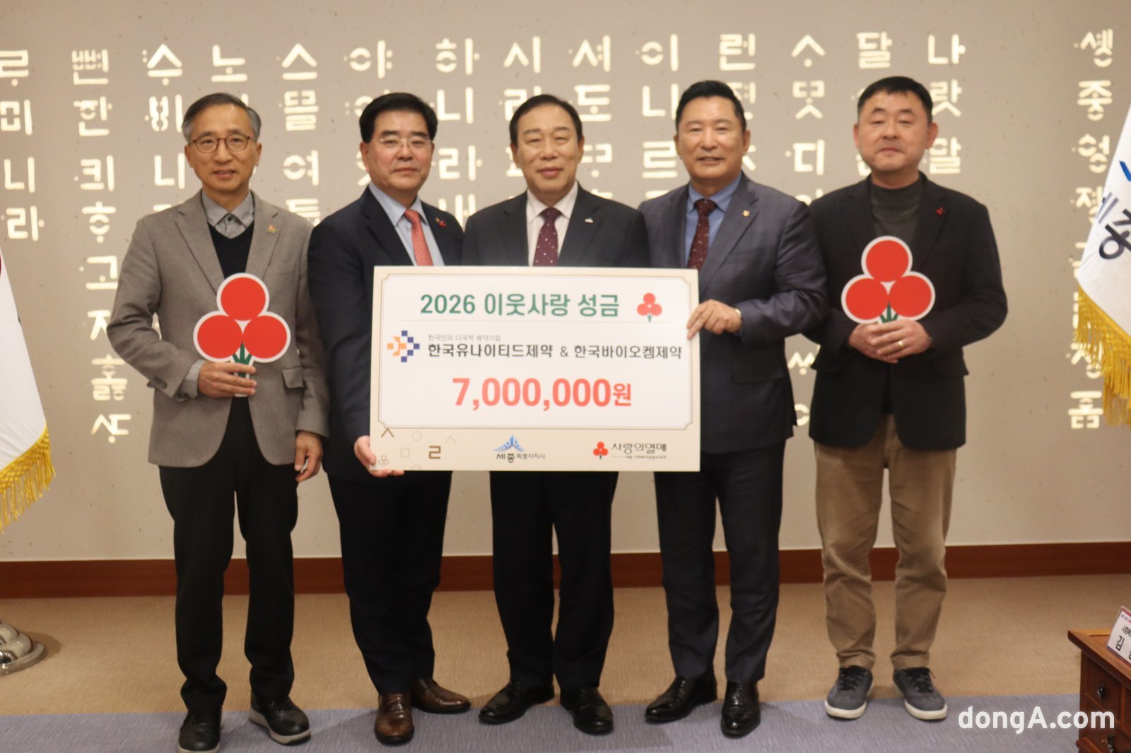 한국유나이티드제약과 한국바이오켐제약이 지역 사회 환원의 일환으로 세종특별자치시에 성금 1800만 원을 기탁했다.