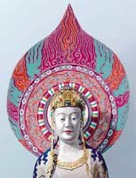 현재 나라(奈良) 호류지(法隆寺)에 보관돼 있는 백제관음상은 과거 한반도 문화의 일본 전파를 극명하게 보여주는 불상으로 올 4월 프랑스에서 열린 「일본의 해」 행사에서 일본을 대표하는 문화재로 전시되기도 했다. 컴퓨터 전문가들의 모임인 하이비전 보급지원센터는 백제관음상에 현재 남아있는 색채를 정밀분석, 제작당시의 불상 모습을 컴퓨터 영상으로 복원해 냈다.