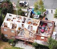 11일 미국 유타주 솔트레이크시티를 강타한 토네이도로 한 가정집의 지붕이 날아가 버렸다. 이번 토네이도로 적어도 1명이 숨지고 1백여명이 다쳤다.<솔트레크시티AP연합>
