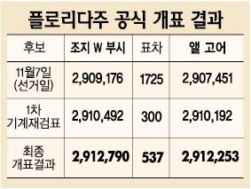 부시 후보는 플로리다주의 선거인단 25명을 추가함으로써 모두 271명의 선거인단을 확보해 대통령 당선에 필요한 선거인단 수(전체 538명의 과반수인 270명 이상)를 충족시켰다.