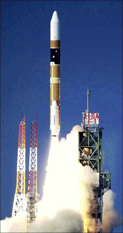 일본의 H2A 1호 로켓이 당초 예정보다 3시간 늦은 29일 오후 4시 가고시마현 다네가시마 우주센터에서 발사되고 있다. <도쿄AP연합>