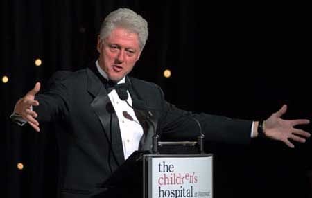빌 클린턴 전 미국 대통령이 8일 호주 시드니에서 아동병원 건립비 마련을 위해 열린 한 마찬장에서 참석자들에게 세계 보건 문제와 지구 온난화 등에 관해 연설하고 있다. <시드니AP연합>