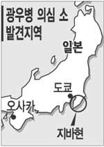 광우병으로 의심되는 소가 발견된 것은 8월6일. 도쿄(東京) 동쪽 지바(千葉)현 시로이(白井)시의 한 목장에서 기르던 소들을 도살장에서 처리하려 할 때 5년생 홀스타인 젖소 한 마리가 제대로 서있지 못하는 등 광우병 증상을 보였다.