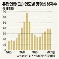그러나 이민자 증가율이 실제 우려할 만한 수준인지 반론도 많다. 이코노미스트에 따르면 EU에 대한 망명 신청자수는 92년 67만5460명에서 99년 38만4530명으로 줄었다. 이민자 정의가 나라별로 달라 ‘통계 뻥튀기’ 주장도 나온다. 벨기에와 이탈리아의 경우 상대국에서 넘어오는 이민자가 1만1000여명이라고 각각 주장하지만 이코노미스트지에 의하면 확인된 숫자는 각각 4100명에 불과하다.