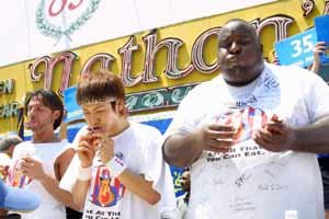 키 170㎝에 몸무게가 51㎏에 불과한 고바야시씨는 162㎏인 찰스 하디, 181㎏인 부커씨 등 거구들을 물리치고 2배 가까이를 먹어치워 탄성을 자아냈다. 그는 지난 1년간 위장을 늘리기 위해 많은 물을 마셨다고 털어놓았다. 대회 후 그의 몸무게는 58.5㎏이 됐다고 대회 개최측은 전했다. 고바야시씨는 2월 폭스 네트워크가 주최한 ‘많이 먹기 대회’에서도 우승했다. 1916년 이래 매년 개최되는 핫도그 빨리 먹기대회는 부상으로 우승자에게 1년 동안 핫도그를 무료 제공한다.