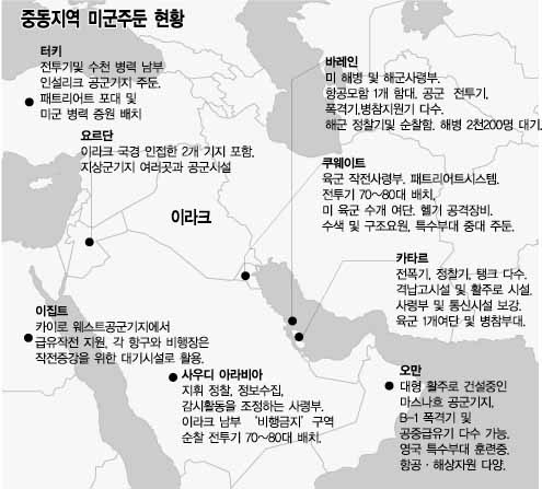 미군은 사우디아라비아 등 중동지역에 3만여명의 병력을 무장시킬 각종 무기류와 군수품을 확보해 놓고 있으며 전면전에 투입될 15만여명의 병력이 크리스마스 이전에 증파될 수 있을 것이라고 이 신문은 덧붙였다.