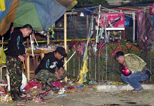 20일에 일어난 사고의 배후는 아직 밝혀지지 않았지만 필리핀 당국은 알 카에다와 연계된 것으로 추정되는 ‘아부 사야프’나 무장 공격을 지속해온 이슬람 분리주의자들의 소행일 것으로 보고 있다. 경찰은 또 이 사건을 포함해 발리 등 동남아시아에서 연달아 일어난 폭발사고가 이슬람 과격단체인 ‘제마 이슬라미아’와 관련이 있는지에 대해서도 조사 중이다.