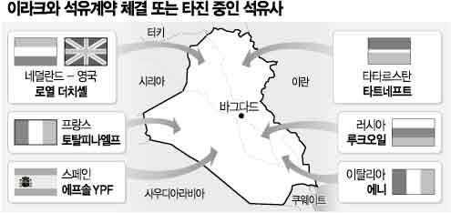 프랑스 토탈피나엘프는 나흐르 우마르 지역 유정 개발을 위해 이라크와 협상에 착수했으며 이탈리아 에니, 스페인 에프솔YPF도 이라크 석유 수출 계약에 서명한 바 있다. 영국 브리티시페트롤리엄(BP)은 지난달 29일 “이라크 석유 사업에 대한 공정한 기회가 주어져야 한다”며 이라크 유전 개발계획 추진을 공식화했다.