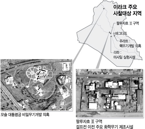 이라크 전역에 산재해 있는 것으로 의심받고 있는 생물·화학·핵무기 관련 시설과 대통령궁 및 그 주변 시설, 기타 문서와 비밀공장 등이 중점 사찰 대상이다. 사찰단은 우선 걸프전 이후 98년 철수하기 전까지 조사했던 ‘과거의 의혹시설’부터 시작해 지난 4년간 새로 조성되거나 개보수된 시설로 사찰 범위를 넓혀갈 계획이다.